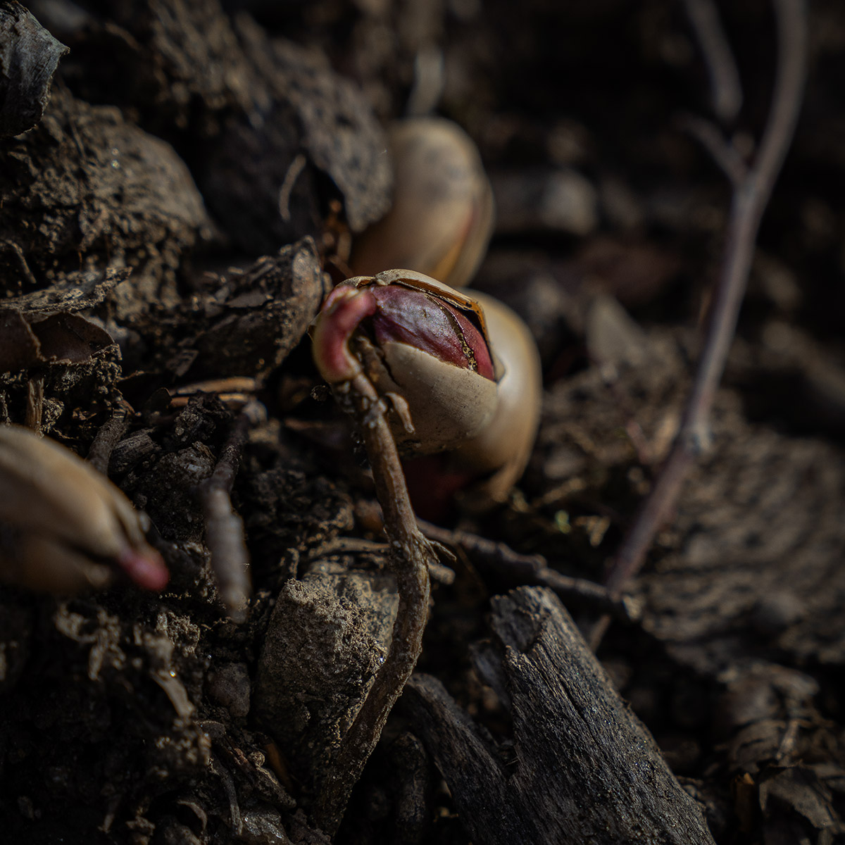En distintos puntos del bosque se puede observar la germinación natural de semillas de diferentes especies. En esta imagen vemos el inicio de la vida de un futuro roble. © Simón Casal para Sonda Internacional