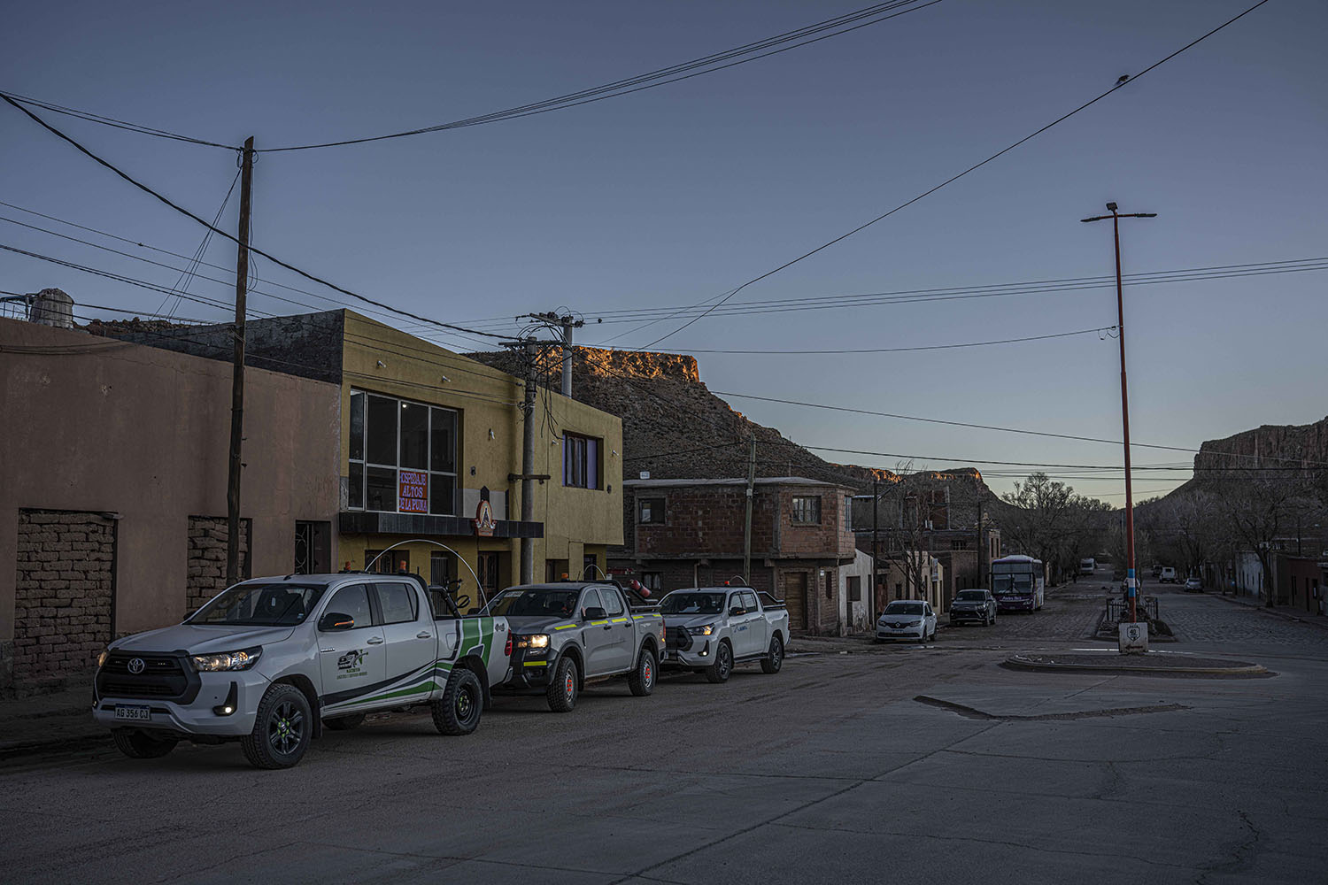 Sobre esa misma agua marrón, un par de metros más allá, están las ruedas de tres camionetas 4x4 estacionadas con algunas personas dentro. Nachito. Logística y servicios mineros, dice un cartel sobre una de ellas. Es el momento del cambio de turno: mineros que vuelven a sus casas después de un turno de siete días y mineros que se van a trabajar a los salares de Olaroz y Cauchari, ubicados a unos 60 kilómetros del pueblo.