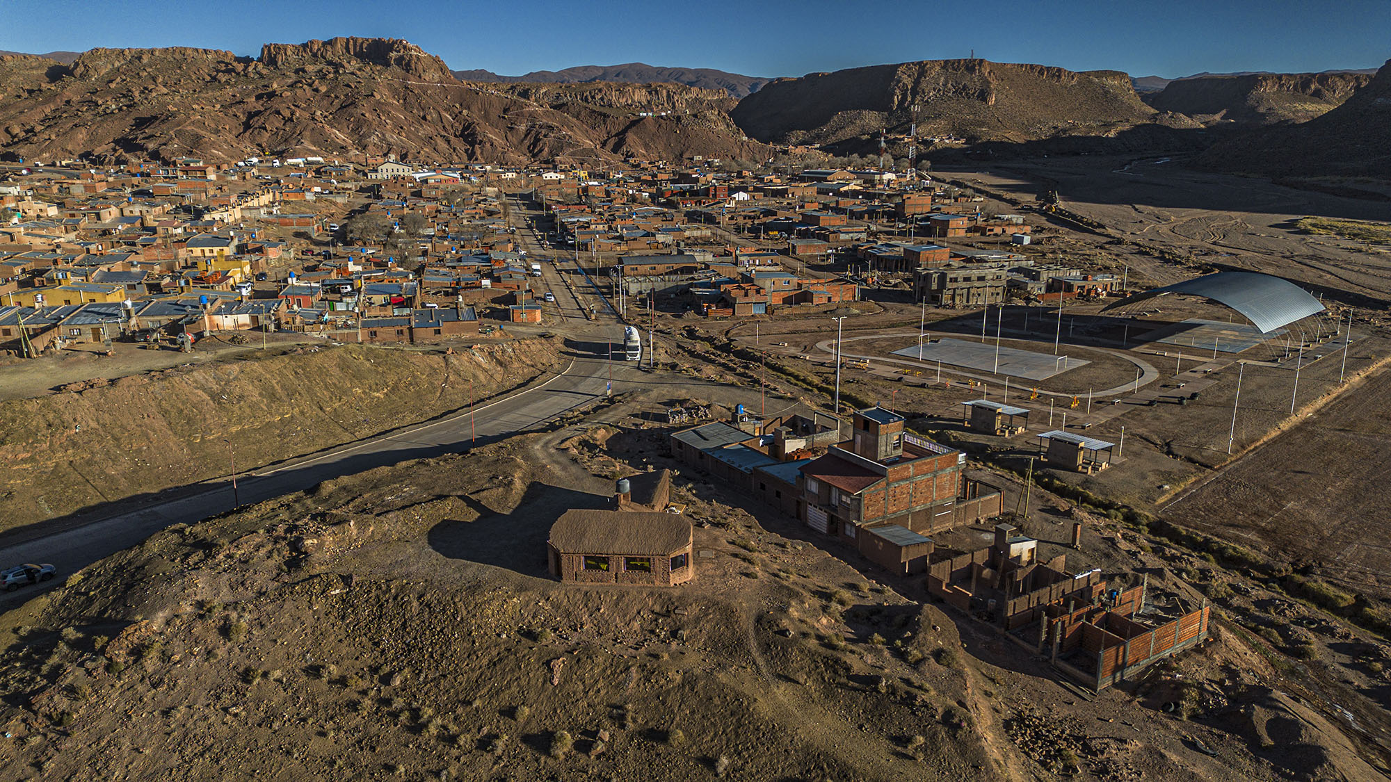 El asfalto que recorre las minas acaba entre las casas del pueblo de Olaroz, ubicado a 4.200 metros de altura, y a solo 20 kilómetros de las plantas de litio. Las casas en construcción y las camionetas 4x4 estacionadas evidencian que esta comunidad originaria está en pleno crecimiento y transformación. Pero sus 150 habitantes son difíciles de encontrar: por un lado, el frío extremo de esta época deja el pueblo prácticamente vacío y la escuela cerrada; por otro, en los últimos años muchos han mejorado sus ingresos como proveedores o empleados de las minas y se han ido a vivir a la ciudad.